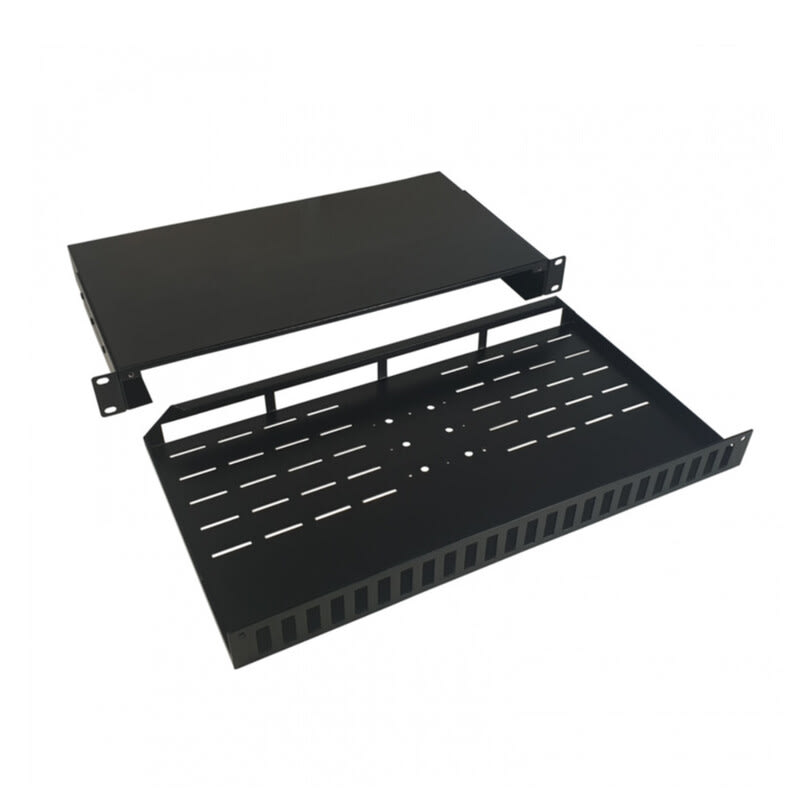 19 tuuman räkkiin sopiva yhden RU:n paneeli, jossa on tilaa 24 SC/APC Duplex-adaptereille. HUOM! Ei sisällä adaptereita.