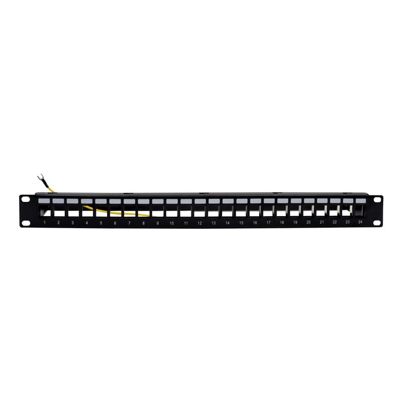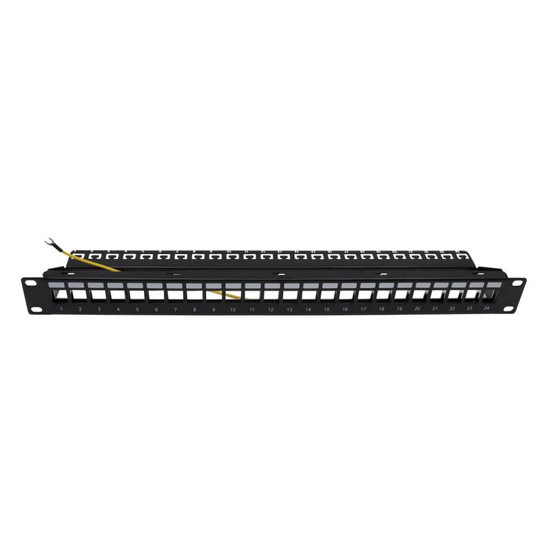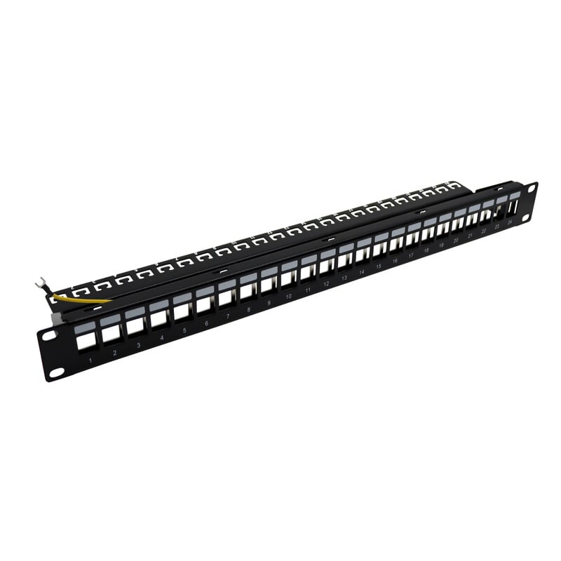19\" 1RU paneeli kaapelin kannattimella, suunniteltu 24:lle RJ45-liittimelle. Paneelia käytetään ristikytkentäpisteenä kiinteän verkon ja laitteiden välillä. Kaapelin kannattimet vähentävät kaapelin painosta johtuvaa liittimeen kohdistuvaa vääntöä, sekä estävät kaapelin tai liittimen mahdollista irtoamista asennettaessa. Kannatin antaa myös lisäsuojaa iskuja ja osumia vastaan pitämällä liittimet paneelin kanssa samalla tasolla.