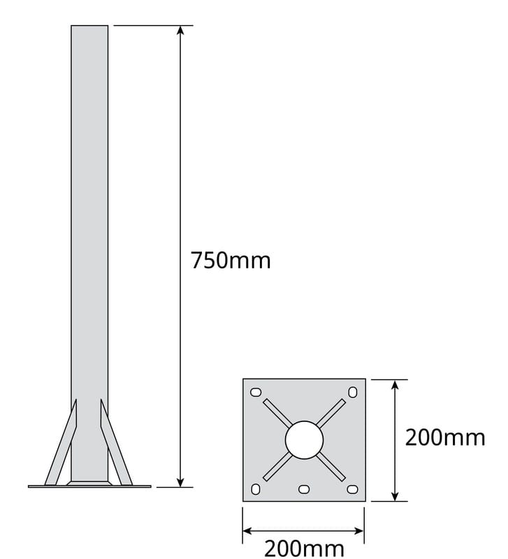 TELEVES - Tukiputki - maa-asennus 750x200mm Ø60mm