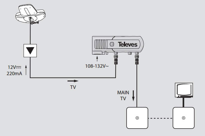 TELEVES - Verkkolaite antenni 230V/24VDC - T5504 (F-Liittimet)