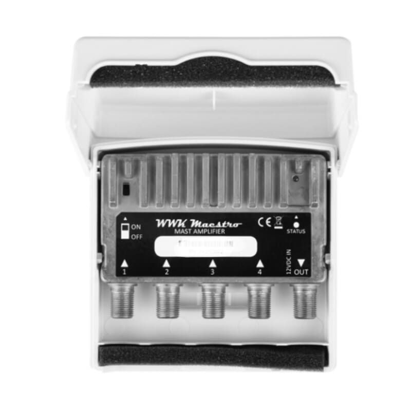 WWK Maestro on uuden sukupolven kanavavahvistin, jossa on 4 tuloa UHF-, VHF- tai yhdistelmäantenneille. UHF- ja VHF-kaistan signaalit viritetään automaattisesti ja selektiivisesti, ja vahvistetaan sitten 32 digitaalisen suotimen avulla. Suotimen selektiivisyys on yli 35dB +/+1 MHz:llä, mikä tarkoittaa käytännössä täydellistä ei-toivottujen signaalien suodatusta.