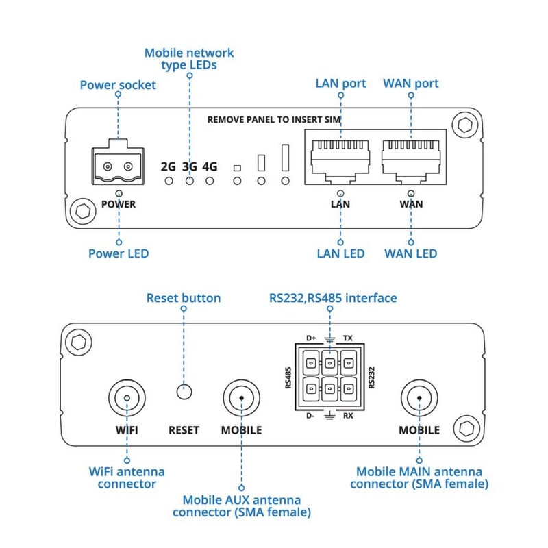 - 2 × SMA-liitintä LTE-antennille