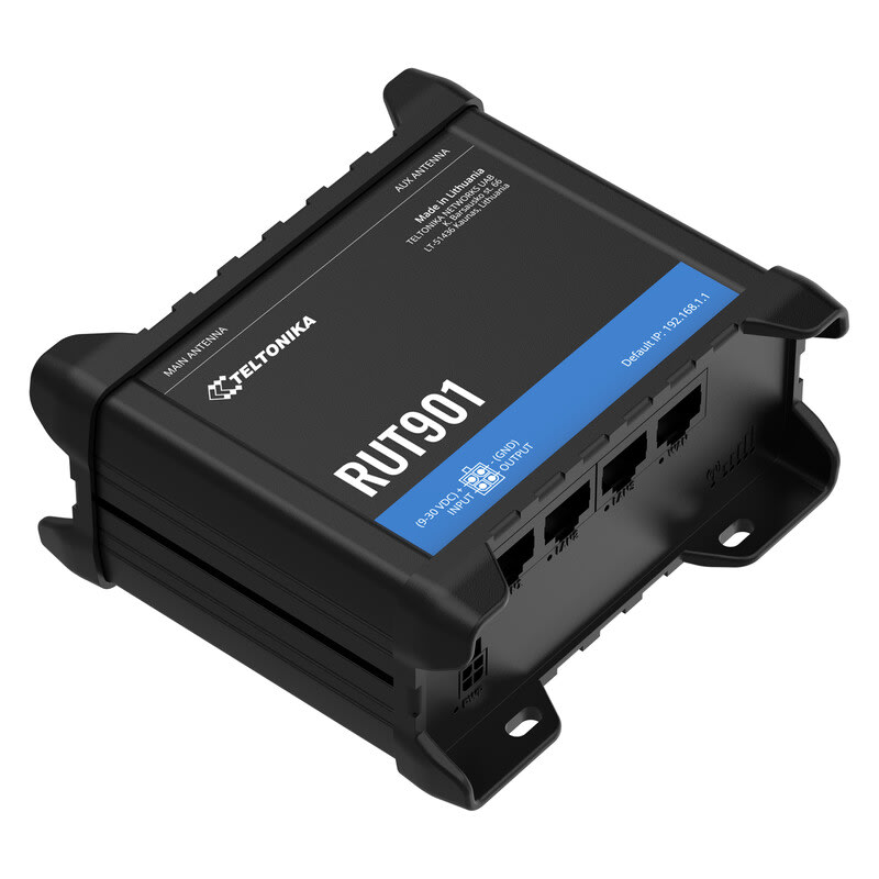 Teltonika RUT901 on luotettava teollisuusluokan 4G/LTE-reititin, joka tarjoaa 4G LTE (Cat 4) yhteyden, Wi‑Fi‑tuen ja neljä Ethernet‑porttia, sekä Dual SIM-varmistuksen.