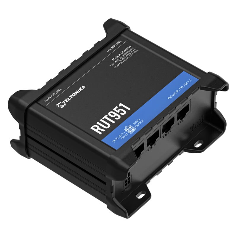 Teltonika RUT951 on luotettava teollisuusreititin, joka tarjoaa 4G LTE (Cat 4) -yhteyden, Wi-Fi-tuen ja neljä Ethernet-porttia.