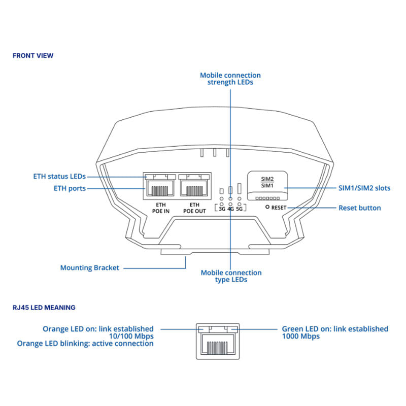 Teltonika OTD500 on kestävä ja monipuolinen ulkokäyttöön suunniteltu 5G-reititin, joka tarjoaa luotettavan yhteyden haastavissakin olosuhteissa.