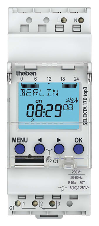 THEBEN - Kellokytkin digit Selekta top3 - Astro 1V/16A IP20 DIN HAR