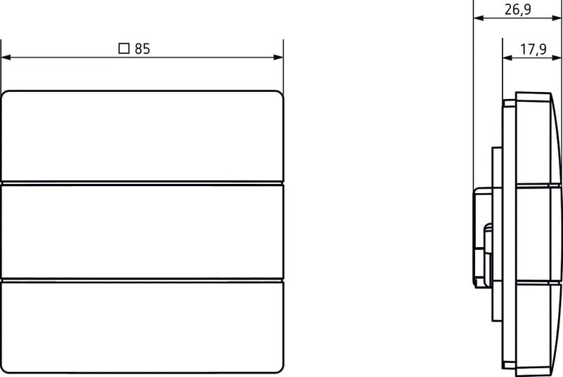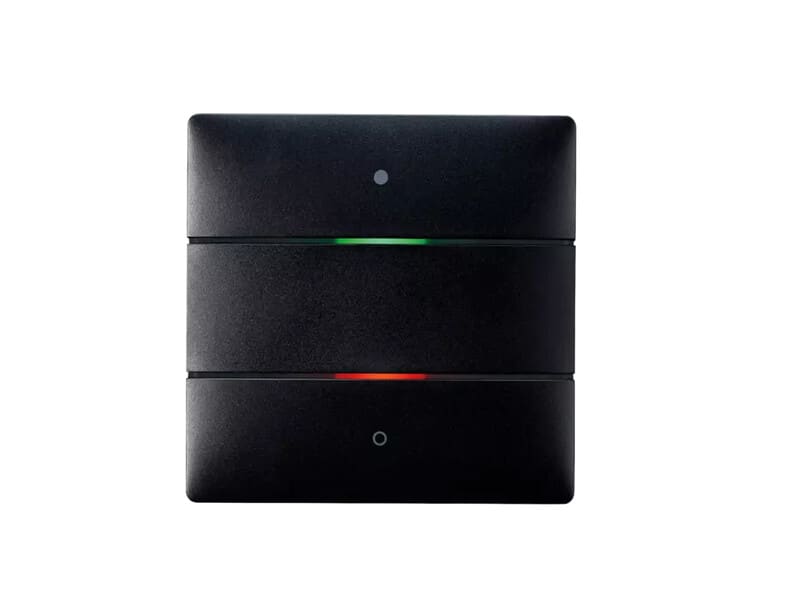 Painike 2 painikkeella ja 2 LED-tilamerkkivaloa integroidulla lämpötila-anturilla Toimintojen kytkentä, himmennys, sälekaihtimet, näyttämö hallinta LUXORliving-järjestelmässä Moniväriset tila-LED-merkkivalot Tila-LED-merkkivalojen automaattinen kirkkauden säätö ympäristön kirkkauden mukaan Integroitu lämpötila-anturi huoneen lämpötilansäätöön LUXORliving-lämmitystoimilaitteilla Kaksi iON-painike-anturia voidaan asentaa tavanomaiseen kaksoiskojerasiaan lisävarusteella 9070822 (vakio yhdistelmäetäisyys 71 mm) Läpinäkyvä kansi yksittäisille merkinnöille mukana toimituksessa