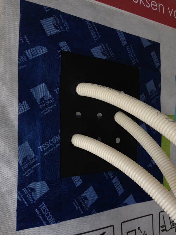 Höyrynsulun läpivienti max.yhdeksälle 15-30mm sähköputkelle.Pakkauksessa malli ja työkalu reikien tekoon.Sisältää teipit.EPDM-kumitiiviste.