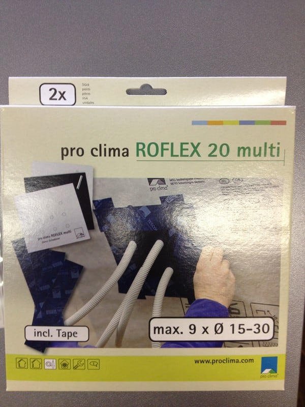 ROFLEX 20 Multi on diffuusiotiivis läpivientikaulus 15 – 30 mm läpimittaisten putkien läpivientien tiivistämiseen. Kaulus kiinnitetään alustaansa tiivistysteipillä. Kaulukseeen voi asentaa yhdestä yhdeksään kaapelia tai putkea. Pakkauksessa on mukana työkalu tarvittavien reikien työstämiseen valmiiksi merkittyihin paikkoihin. Pakkaus sisältää 2 läpivientiä.