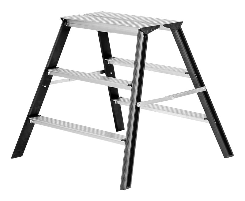 Työpukki TP3-ask PRO. VNa 205/2009 ja RT-ohjeistuksen mukainen työmaakäyttöön. Tason koko 300x600 mm. Valmistettu Suomessa. Vakaa kotimainen työpukki ammattikäyttöön, 3-askelmaisen tasokorkeus on 0,73 m, sopiva valinta noin 2,7 m huonekorkeuteen asti. Suuri, uritettu alumiininen seisontataso 600 x 300 mm. Uritetut 80 mm syvät askelmat on kiinnitetty kestävällä liitostekniikalla. Yhdessä sivuprofiileiden levenevän harituksen sekä metallirajoittimien kanssa työpukki on vakaa käyttää. Alumiiniprofiileiden musta struktuurimaalipinta on miellyttävä käsitellä - ei sotke käsiä sekä tuote on kevyt kantaa. Täyttää SFS EN131-1:2015 kantavuus max 150 kg. Tämä työpukki on tarkoitettu VNa 205/2009 ja RT-ohjeistuksen Turvalliset työpukit mukaiseen rakennustyömaakäyttöön, tiedot löytyvät myös tuotetarrasta.