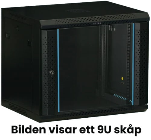 Tilava 19-tuumainen seinäkaappi, jonka voi kääntää ulos seinästä päästäkseen käsiksi takana oleviin laitteisiin. Sarana lisää vasemmanpuoleiseen leveyteen 20 mm edestäpäin katsottuna. 19" yksiköt asennetaan neljään pylvääseen joiden syvyys on 350MM. Sopii sekä seinä, että lattia-asennuksiin