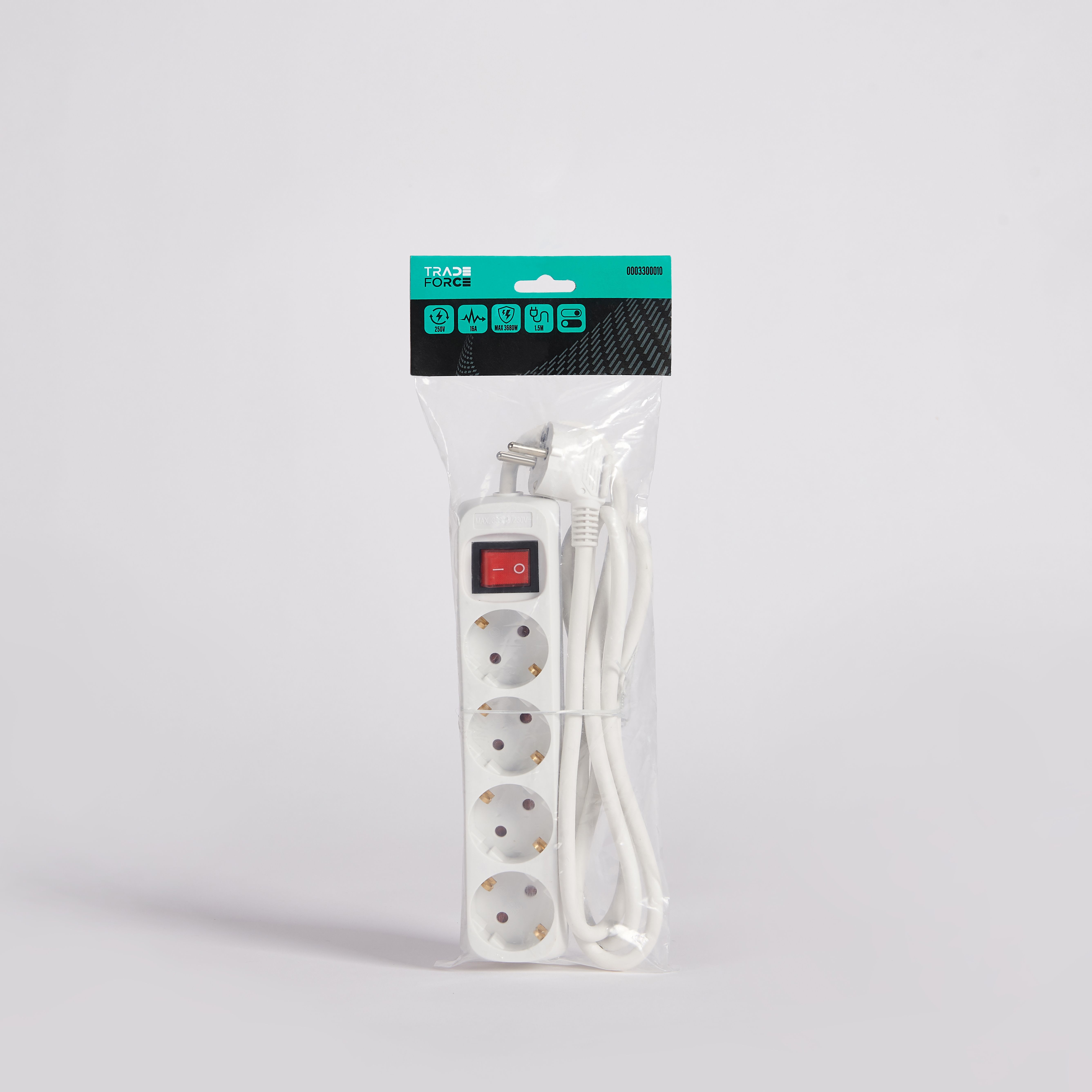 TRADEFORCE - Jatkojohto on/off 3300010 - H05VV-F, 3G1.5, 1,5m 4xschuko