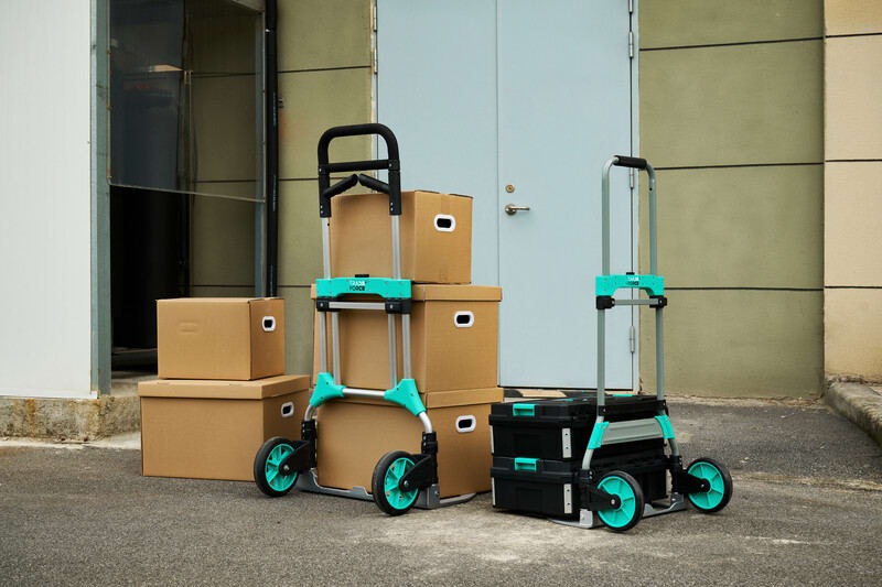Kuljetus- /nokkakärryt, kokoon taittuva, max kuorma 200 kg Suurin kuormituskapasiteetti: 200 kg. Paino: 9,7 kg. Jalkalevyn koko: 590 x 400 mm. Taittomitat: 90 (P) x 590 (L) x 1030 mm (K), avattuna: 610 (P) x 620 (L) x 1220 mm (K). Alumiinirunko ja jalkalevy, kestävä rakenne. Varustettu kahdella 200 mm:n raskaaseen käyttöön tarkoitetulla taittuvalla pyörällä, jotka on valmistettu PP:n ja TPR:n yhdistelmästä. Taittuva vaahtomuovinen muovikahva. Integroitu, ulosvedettävä kahva aisan pidentämiseksi. Nopea ja helppo taittomekanismi tilaa säästävään säilytykseen.