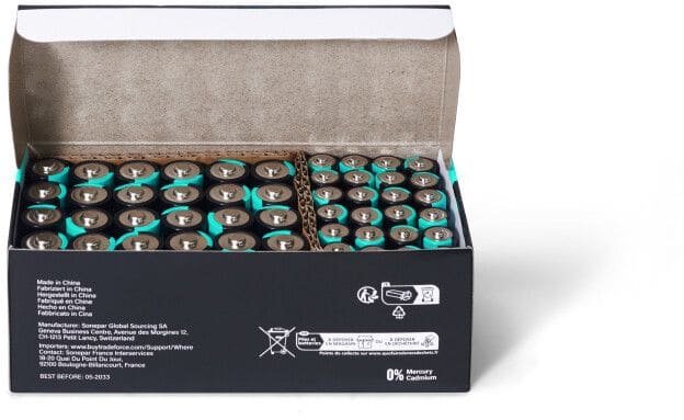 Pakkauksessa 24xAA (LR6) + 24xAAA (LR03) paristot. 10 vuoden varastointiaika. LR03 AAA Capacity: 1270 mAh Height including pole:43.3 mm Diameter: 9.8 mm Weight: 11.2 g