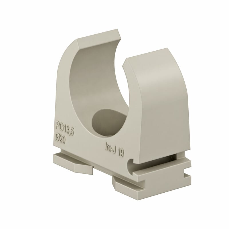 Putkikiinnike (polyamidi PA) sekä teräs että muoviputkien helppoon kiinnittämiseen. Kiinnikkeessä pohjassa ruuvinreikä. Soveltuu M18 ja M20 putkille. Huomoitavaa on että käytettäessa M20 putkea kiinnikkeiden kiinnittäminen rinnakkain toisiinsa saattaa olla haastavaa. M18 ja M19 ei rinnakkain kiinnittämisessä ole ongelmaa.