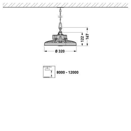 - Lisätarvikkeet: ripustusketju, asennuskiinnike, valaisimeen integroitava HF-tunnistin ja kaukosäädin tilauksesta