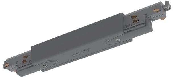 Harmaa Control-DALI keskisyöttörasia helppoon sähkönsyöttöön. Asennetaan nopeasti paikoilleen kosketinkiskoja yhdistämään ja mahdollistamaan sähkönsyöttö seuraavaan kiskoon.