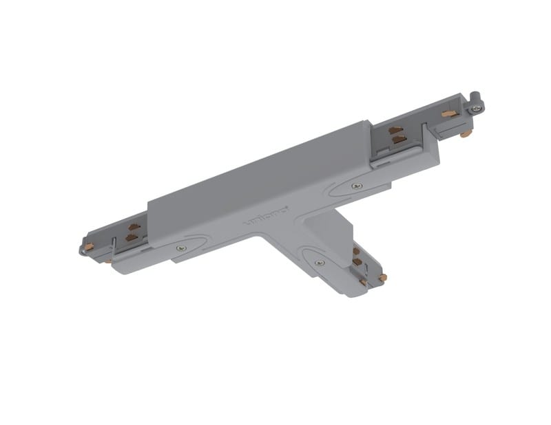 Valkoinen Control-DALI T-kappale nopeisiin kosketinkiskojen jatkoihin ja yhdistämisiin. T-kappaleessa on sähkönsyöttömahdollisuus, maadoitus C.