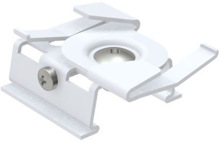 Teräksinen, valkoinen kattokiinnike. Kattokiinnike on erinomainen valinta kiinnittäessä kosketinkisko suoraan katon 24mm T-palkkiin.
