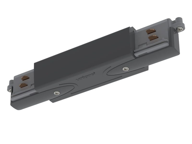 Harmaa keskisyöttörasia yhdistämään kosketinkiskoja ja mahdollistamaan sähkönsyöttö seuraavaan kiskoon. Nopea ja helppo asentaa.