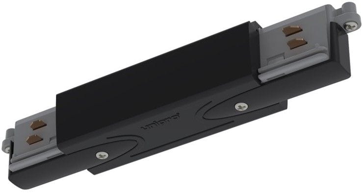 Musta keskisyöttörasia helppoon sähkönsyöttöön. Asennetaan nopeasti paikoilleen kosketinkiskoja yhdistämään ja mahdollistamaan sähkönsyöttö seuraavaan kiskoon.