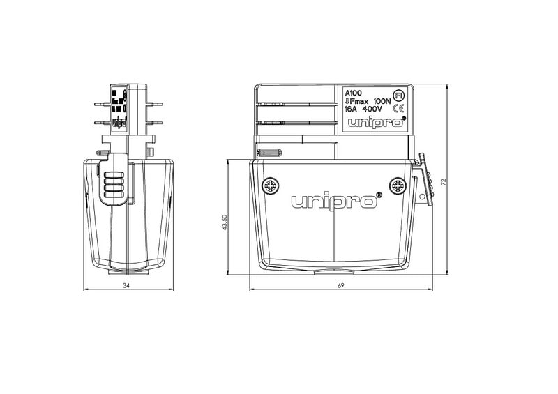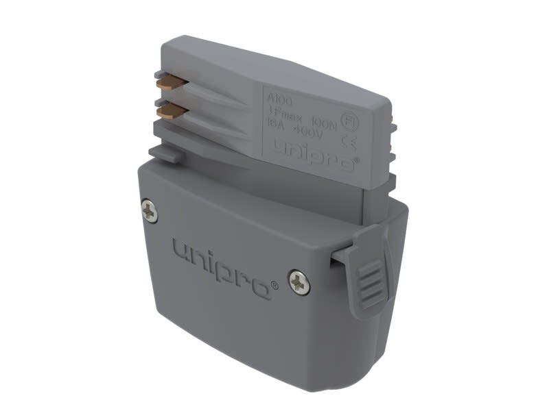 Virranottolaite helppoon ja nopeaan virranottoon. A100 on käytännöllinen otettaessa virtaa lukuisiin 1- tai 3-vaihelaitteisiin tai valaisimiin unipro® -kosketinkiskosta. Värinä klassinen harmaa.