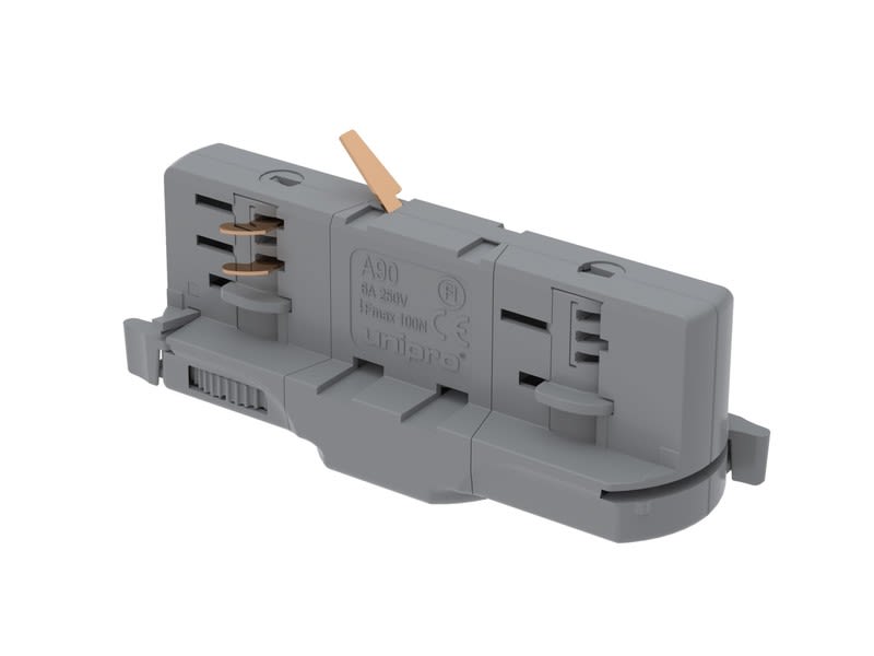 Universaali kosketinkiskoadapteri nopeisiin, sujuviin asennuksiin. A90 valaisinadapteria käytetään pääasiassa kohdevalaisinten asennuksiin. A90 on suunniteltu yhteensopivaksi useimpien 3-vaihekosketinkiskojen kanssa. Harmaa kosketinkiskoadapteri on kaunis ja siisti harmaasävyisiin kosketinkiskoasennuksiin.
