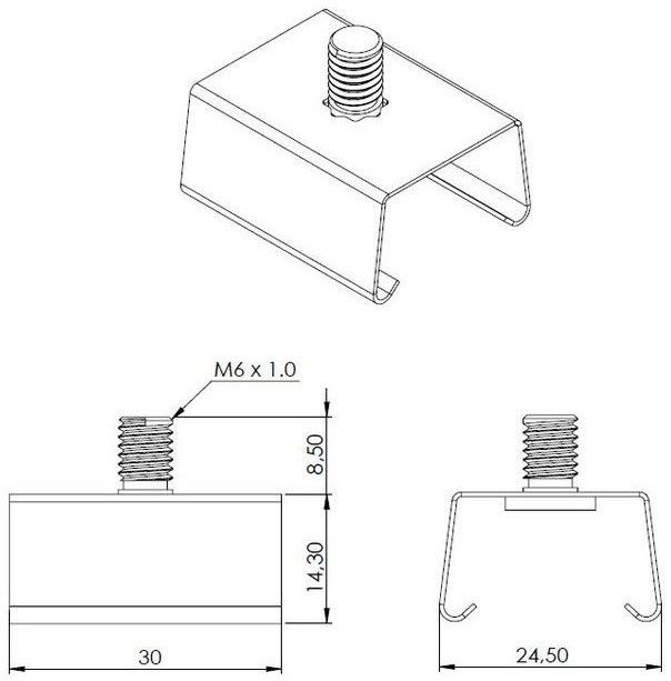 Metallin harmaa pikakiinnike nopeisiin asennuksiin. QCB pikakiinnikkeen asennus kosketinkiskoon onnistuu ilman työkaluja ja napsahtaa kiskoon vaivattomasti.