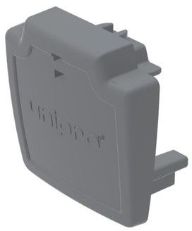 Kosketinkiskon harmaa päätykappale. EC3 asennus sujuu vaivattomasti napsauttamalla päätykappale pinta-asennettavan unipro® -kosketinkiskon päähän.