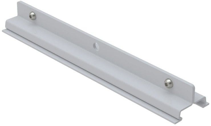 Kosketinkiskon jatkoskohdan valkoinen ripustuskiinnike. Teräksinen jatkoskohdan ripustuskiinnike on erinomainen valinta kohtaan, jossa kosketinkiskot on liitetty toisiinsa jatkokappaleella JU3.