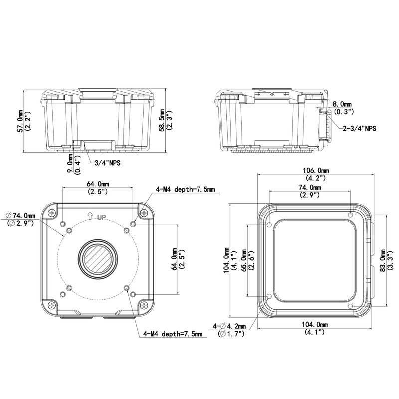 - Mitat: Φ104mm*104mm*55.5mm (4.09” x4.09”x2.19”)
