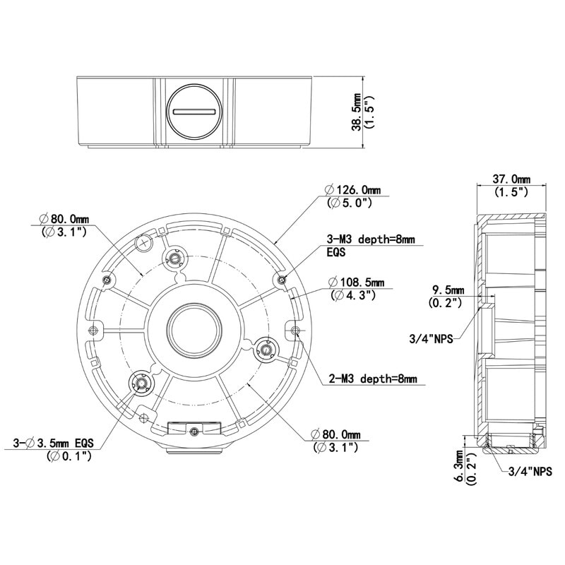 - Käyttötarkoitus: Kytkentärasia IPC363X, IPC36XXS/E-sarjojen kalansilmä- ja Fixed Dome kameroille