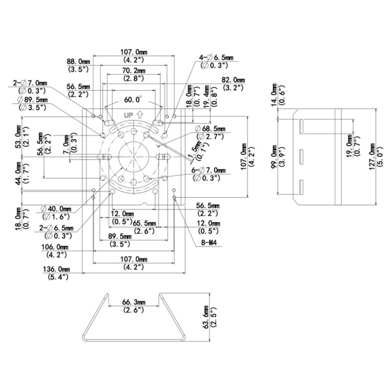 - Mitat: 127mm x 136mm x 62.4mm