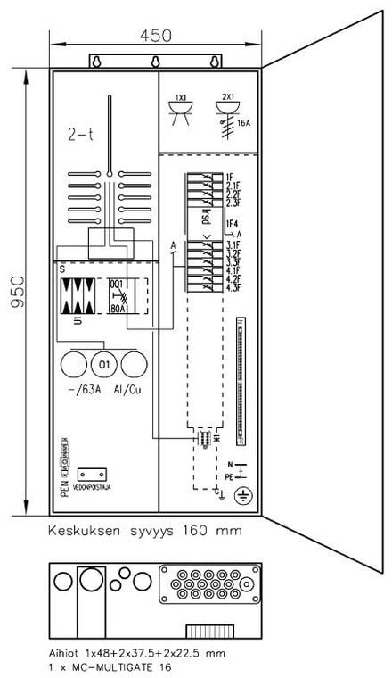 UTU - 2T Mittauskeskus ylijänn.IP34 - COLLIE 3806P63 2T+PRY 63A