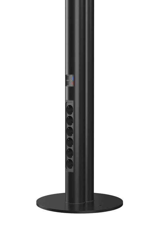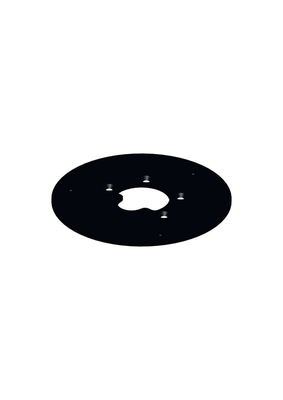 Kiinnitystarvike PTL160B, pöytalaippa, musta Pöytälaippa 3 mm, PTL160B Ø=160 mm, musta. Pylvään kiinnitys pohjasta esim. pöytälevyyn laipan avulla. Laipassa on Ø=50mm läpivienti johdoille.