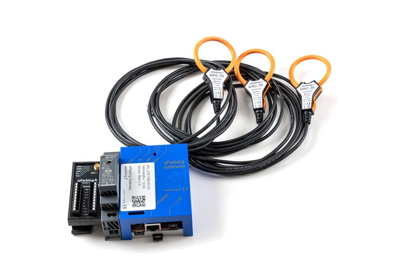 UTU-XCamu-eG , 3x virtamuuntajat, Camu-mittausyksikkö, 12V, eG-yhteyslaite UTU-X Camu-eGDynaaminen kuormanhallintasarja UTU-X Camu-eG sisältää 3 kpl avattavia Rogowski-kelallisia virtamuuntajia (halkaisija 36mm, johtopituus 2m), CAMU-mittausyksikön, 12V virtalähteen sekä eG-yhteyslaitteen. Virtalähde vaatii käyttöjännitteen. UTU-X Camu-eG on DIN-kiskokiinnitteinen, tilavaatimus 7 DIN-moduulia. UTU-X Camu-eG-kuormanhallinta vaatii tietoliikenneyhteyden toimiakseen. UTU-X Camu-eG tietoliikenne yhteys toteutetaan erillisellä eG-yhteyslaitteella. eG-yhteyslaite tulee olla CAMU-mittausyksikön välittömässä läheisyydessä. eG-yhteyslaitteen tietoliikenneyhteydeksi suositellaan kiinteää ethernet ythteyttä.UTU-X Camu-eG -kuormanhallinta liitetään aina eParking.fi –taustajärjestelmään eParking -asennussovelluksen avulla. eParking-taustajärjestelmään syötetään ohjausparametrit, jotka ohjaavat latauskentällä olevia UTUReX- ja UTUMaX -latausasemia vapaan kapasiteetin sekä asetettujen raja-arvojen puitteissa. Tyypillinen käyttökohde: Mittauspiste sijaitsee kaukana latauskentästä tai ulkoista antennia ei voida hyödyntää.