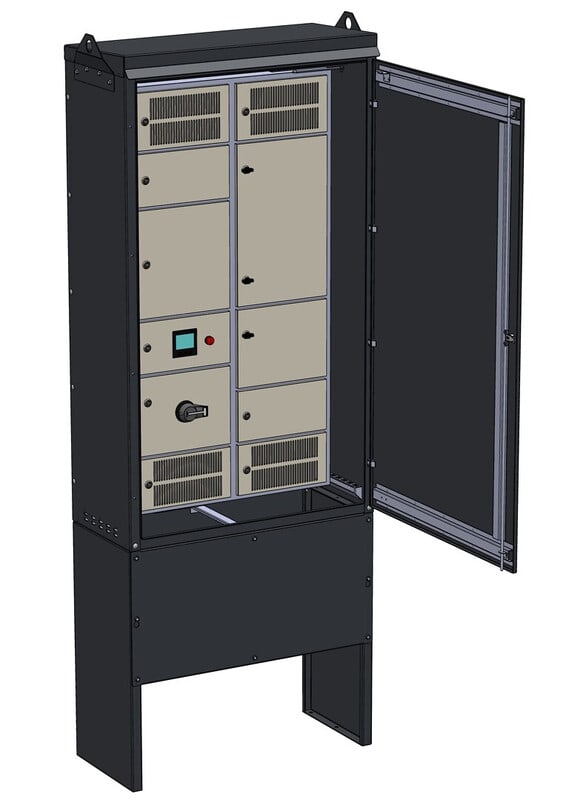 Latausjakokaapit ovat vapaasti piha-alueelle jalustalle asennettavia, suojakaapilla varustettuja keskuksia, joissa on huomioitu latauskeskusstandardin tarpeet ja vaatimukset. Lämpenemän hallinta on sähköauton latauksessa erityisen tärkeää, joten UTUn latausjakokaapeissa on aina komponenttikohtaiset tuuletusvälit ja kenttäkohtainen tuuletus. Latausjakokaapin sisällä olevan keskuksen kotelointiluokka on tuulettuvan rakenteen myötä IP31, mutta kokonaisuutena (suojakaappi + keskus) toteutuu kotelointiluokka IP44.