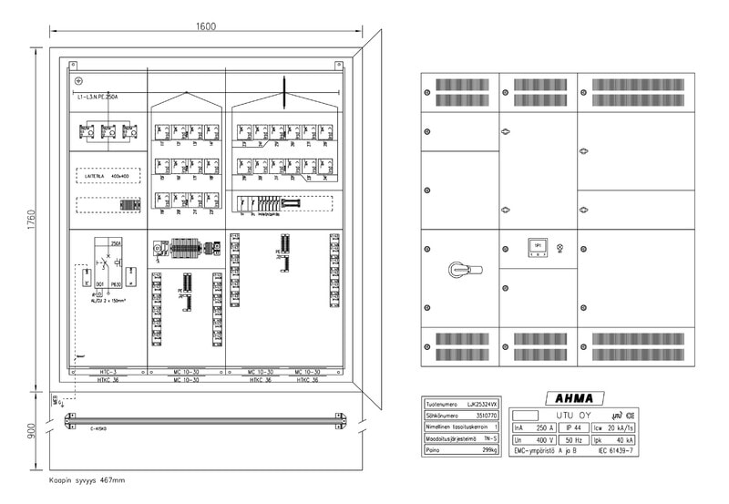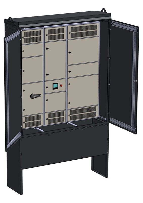 Latausjakokaapit ovat vapaasti piha-alueelle jalustalle asennettavia, suojakaapilla varustettuja keskuksia, joissa on huomioitu latauskeskusstandardin tarpeet ja vaatimukset. Lämpenemän hallinta on sähköauton latauksessa erityisen tärkeää, joten UTUn latausjakokaapeissa on aina komponenttikohtaiset tuuletusvälit ja kenttäkohtainen tuuletus. Latausjakokaapin sisällä olevan keskuksen kotelointiluokka on tuulettuvan rakenteen myötä IP31, mutta kokonaisuutena (suojakaappi + keskus) toteutuu kotelointiluokka IP44.