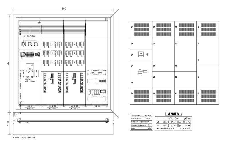 Suojakaapin materiaalina on maalattu teräs (väri RAL 7024) ja ovessa on kolmipistesalpa lukitusmahdollisuudella. Katolle on sijoitettu nostokorvat. Kaapin kyljissä sijaitsevat tuuletusritilät. Huom! Jalusta tilattava erikseen (soveltuva jalusta JAL1800 3510700).