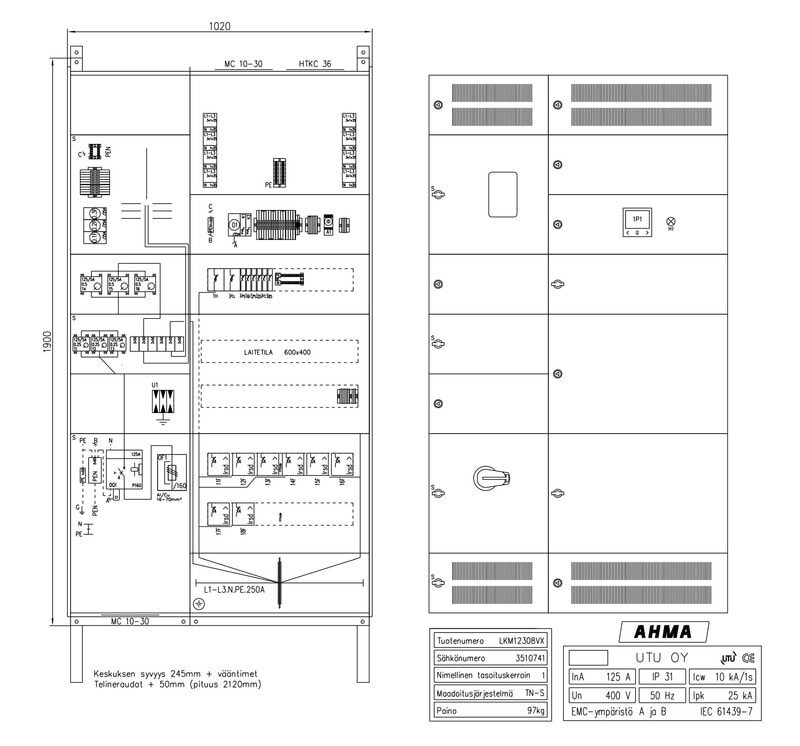 Sähkölaitoksen mittausta varten mittausmalleissa (LKM ja LJKM) keskuksessa M2-mittaripaikka ja 0.2S-tarkkuusluokan virtamuuntajat, sekä yhdistelmäylijännitesuoja Hager SPA930 hälytyskoskettimilla. Keskukseen voidaan liittää sähkölaitoksen 63A liittymä, joka on teholiittymää halvempi. Myöhemmin tehontarpeen kasvaessa, liittymää voidaan kasvattaa 125A asti. Keskuksen osalta tämä onnistuu kompaktikatkaisijassa olevan DIP-kytkimen avulla (katkaisijatila sinetöitävissä).