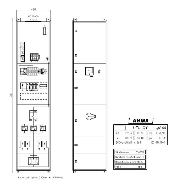 Pääjohtimen/syöttökaapelin nimellispoikkipinta-ala: