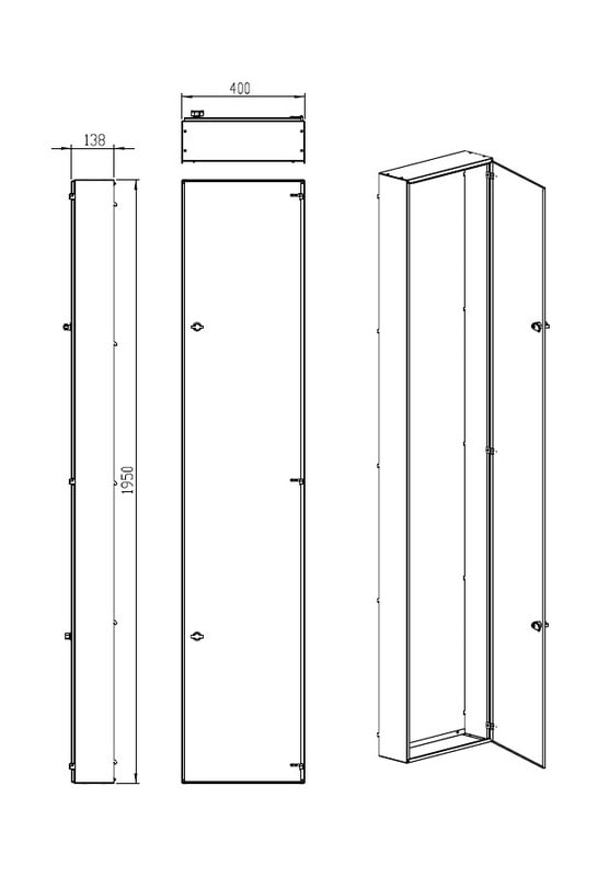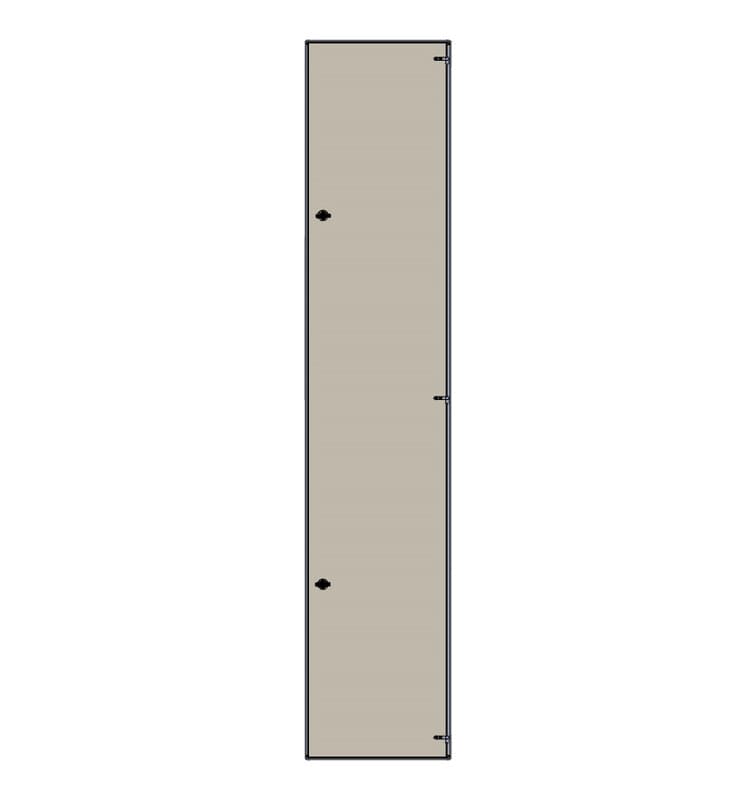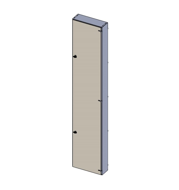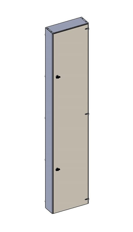 Suojaovi monimittarikeskukseen. Väri RAL 1013. varustettu käsisalvalla. Suojaovi monimittarikeskukseen. Väri RAL 1013. Ovet kiinnitetään ylä- ja alapäästään keskusrungossa oleviin kiinnitysreikiin. Ovessa on käsisalpa, jonka tilalle voidaan vaihtaa työkalusalpa.