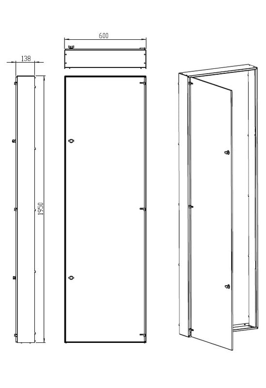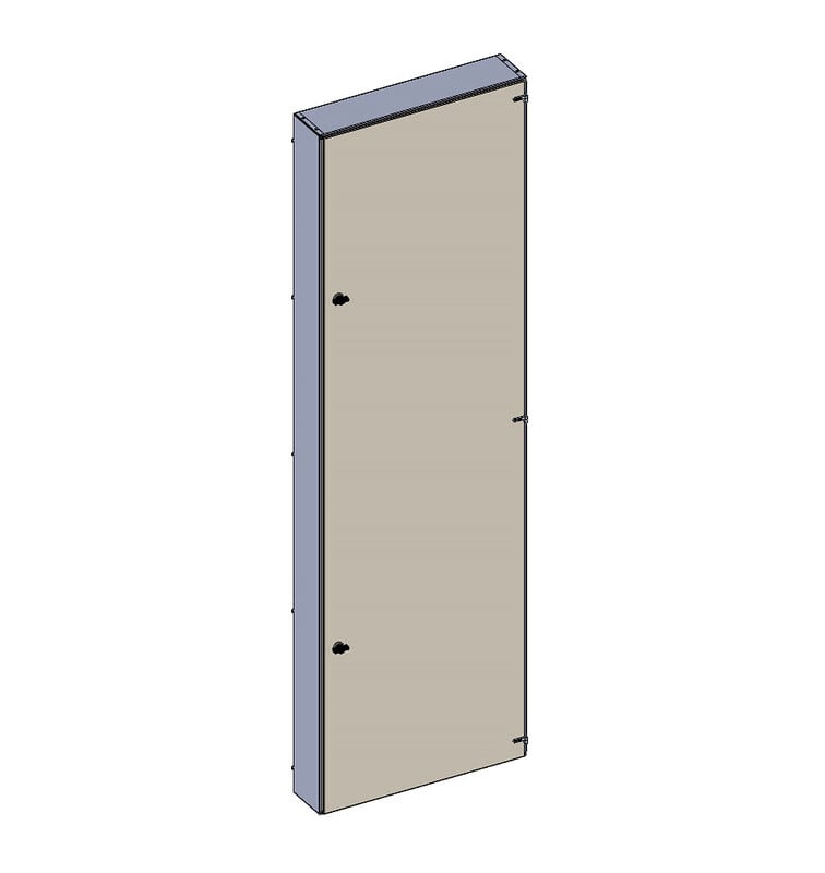 Suojaovi monimittarikeskukseen. Väri RAL 1013. varustettu käsisalvalla. Suojaovi monimittarikeskukseen. Väri RAL 1013. Ovet kiinnitetään ylä- ja alapäästään keskusrungossa oleviin kiinnitysreikiin. Ovessa on käsisalpa, jonka tilalle voidaan vaihtaa työkalusalpa.