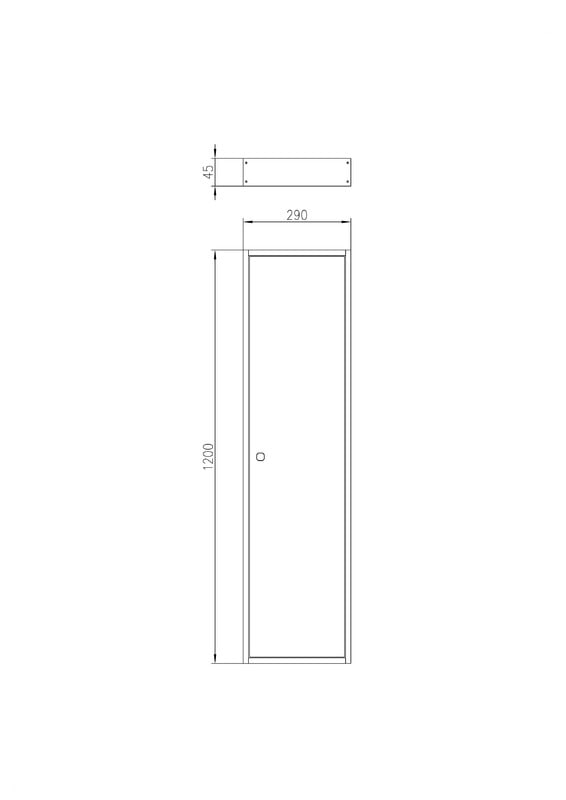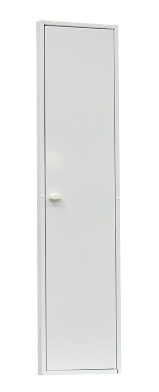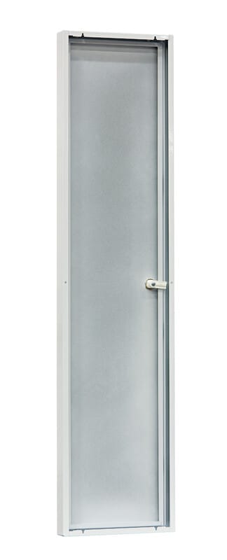 Suojaovi mittauskeskukseen. Ovi 1200/45. Ovessa on käsisalpa. jonkatilalle voidaan vaihtaa työkalusalpa. Suojaovi mittauskeskukseen, Ovi 1200/45. Ovet kiinnitetään ylä- ja alapäästään keskusrungossa oleviin kiinnitysreikiin. Ovessa on käsisalpa, jonka tilalle voidaan vaihtaa työkalusalpa.
