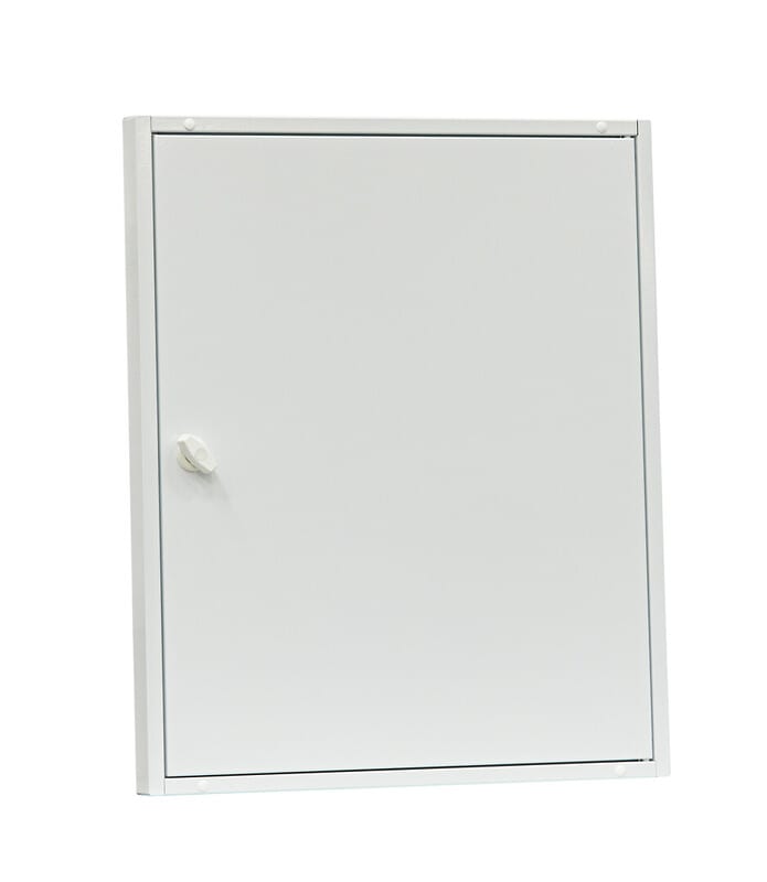 Suojaovi ryhmäkeskukseen. 600/37. Ovessa on käsisalpa. jonka tilallevoidaan vaihtaa työkalusalpa. Suojaovi ryhmäkeskukseen, 600/37. Ovet kiinnitetään ylä- ja alapäästään keskusrungossa oleviin kiinnitysreikiin. Ovessa on käsisalpa, jonka tilalle voidaan vaihtaa työkalusalpa.