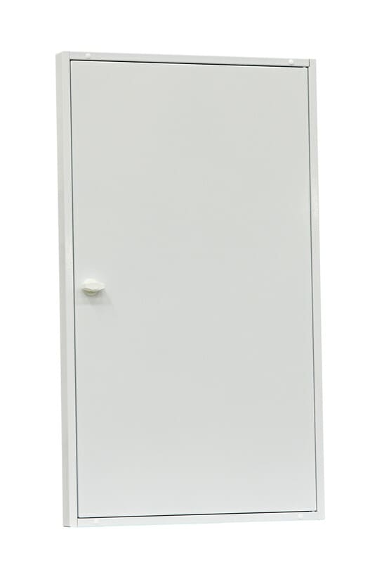 Suojaovi ryhmäkeskukseen. 850/37. Ovessa on käsisalpa. jonka tilallevoidaan vaihtaa työkalusalpa. Suojaovi ryhmäkeskukseen, 850/37. Ovet kiinnitetään ylä- ja alapäästään keskusrungossa oleviin kiinnitysreikiin. Ovessa on käsisalpa, jonka tilalle voidaan vaihtaa työkalusalpa.