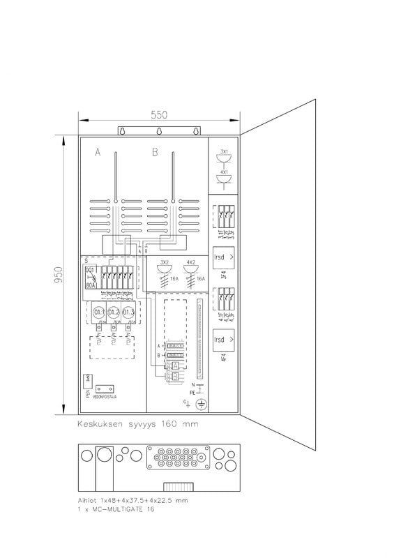UTU - Paritalokeskus RAL7024 - colli38P63+PR X 2T 50A IP34 FE