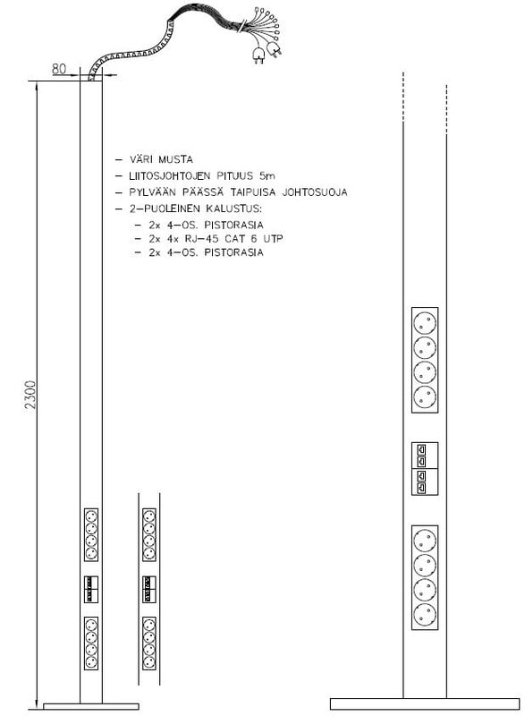 Asennus-/pistorasiapylvään väri - musta