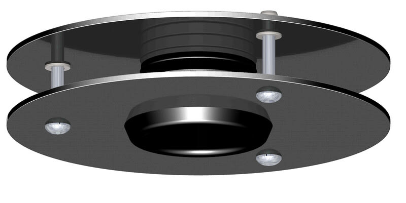 Kiinnitystarvike PKK-T150B, kattokaulus, musta Läpivientikaulus PKK-T 150, Ø=50/150 mm, musta. Materiaali alumiini. Alaslasketun katon läpivientien viimeistelyyn.