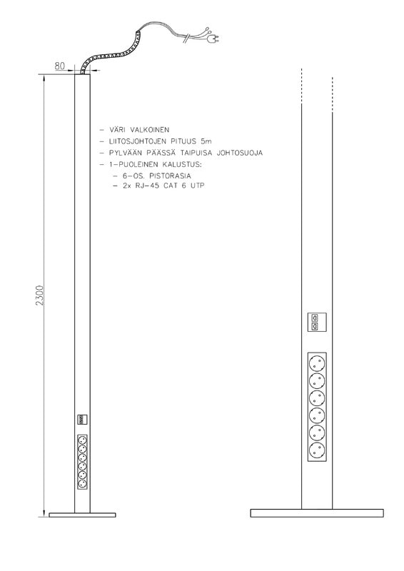 Asennus-/pistorasiapylvään väri - valkoinen